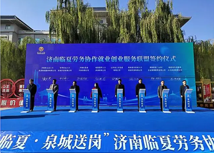 活動期間,濟(jì)南市東西部勞務(wù)協(xié)作臨夏工作站、濟(jì)南臨夏勞務(wù)協(xié)作就業(yè)創(chuàng)業(yè)服務(wù)聯(lián)盟同步成立,山東省人才在線成為濟(jì)南臨夏勞務(wù)協(xié)作就業(yè)創(chuàng)業(yè)服務(wù)聯(lián)盟首批成員單位。同時(shí),山東省人才在線、濟(jì)南新立達(dá)、山東港鐵航旅、濟(jì)南比亞迪等4家企業(yè)與臨夏4家企業(yè)現(xiàn)場簽訂合作協(xié)議。