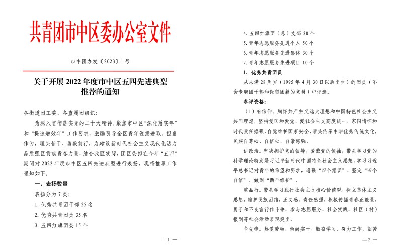 為深入貫徹落實(shí)黨的二十大精神,聚焦市中區(qū)“深化落實(shí)年” 和“提速增效年”工作要求,激勵(lì)引導(dǎo)全區(qū)青年銳意進(jìn)取、擔(dān)當(dāng)作為,埋頭苦干、勇毅前行,為建設(shè)新時(shí)代社會(huì)主義現(xiàn)代化活力品質(zhì)強(qiáng)區(qū)貢獻(xiàn)青春力量,今年4-5月,濟(jì)南市市中區(qū)團(tuán)委對2022年度市中區(qū)五四先進(jìn)典型進(jìn)行了評選表揚(yáng)。