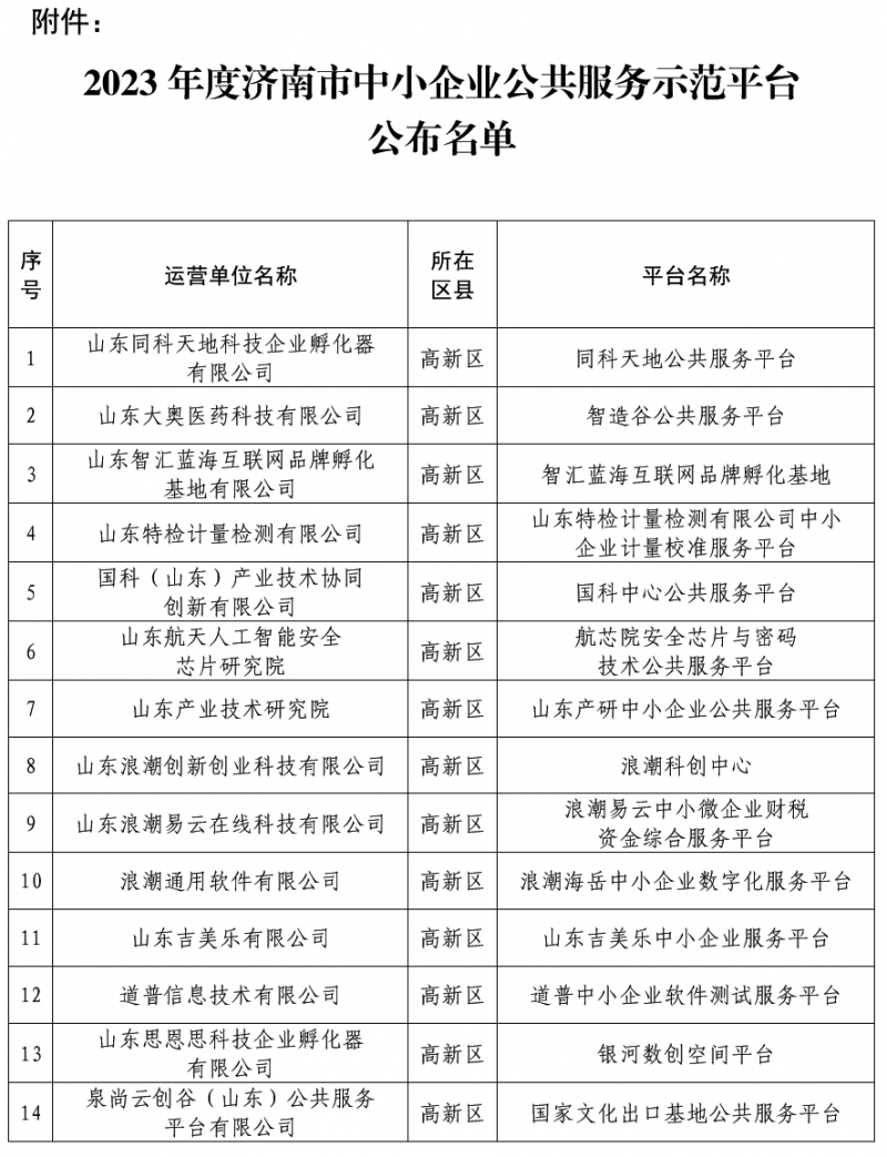 附件:2023年度濟(jì)南市中小企業(yè)公共服務(wù)示范平臺(tái)公布名單.docx